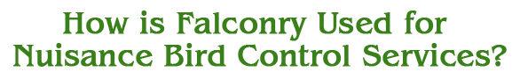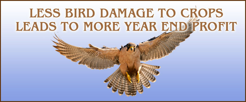 Falcons are trained daily for a year prior to harvest with the objective of teaching the falcons to fly high above crops to scatter nuisance birds. While in the vineyards and farms, just prior to harvest, falcons are released, one at a time, to patrol the skies over the crops. The nuisance birds are dispersed when they see their natural predators, the falcons, in the area.